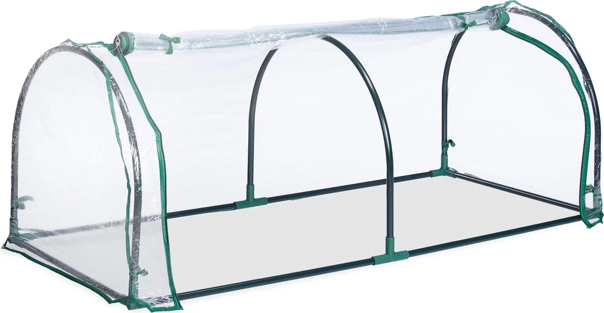 Met deze doorzichtige tunnel kweekkas kun je thuis zelf groente en planten kweken. In de kleine tuinkas kunnen tomaten, bloemen en kruiden optimaal groeien. De foliekas beschermt plantjes tegen weersinvloeden en ongedierte en zorgt bovendien voor een ideaal klimaat. De temperatuur kan door de oprolbare deur aangepast worden. Dankzij het praktische steeksysteem kun je de mini broeikas snel en makkelijk in elkaar zetten.