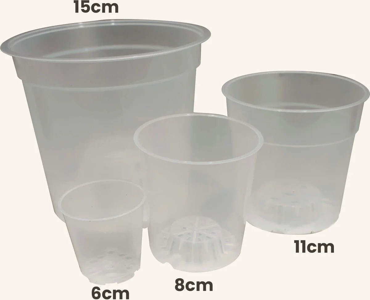 Deze doorzichtige aroid/orchidee potten zijn een goedkope keuze voor wanneer je een oogje wil houden op de wortels van je plant. Ze zijn vooral geschikt voor stekjes, omdat je kunt zien of ze al goed geworteld zijn. Alle potten worden geleverd in verpakkingen van 5 stuks.